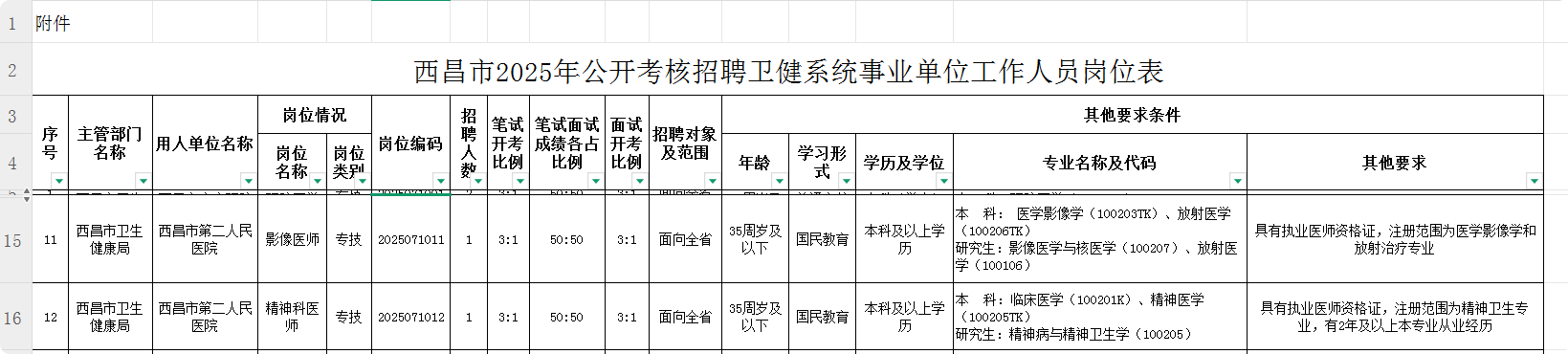 西昌市第二人民医院岗位表